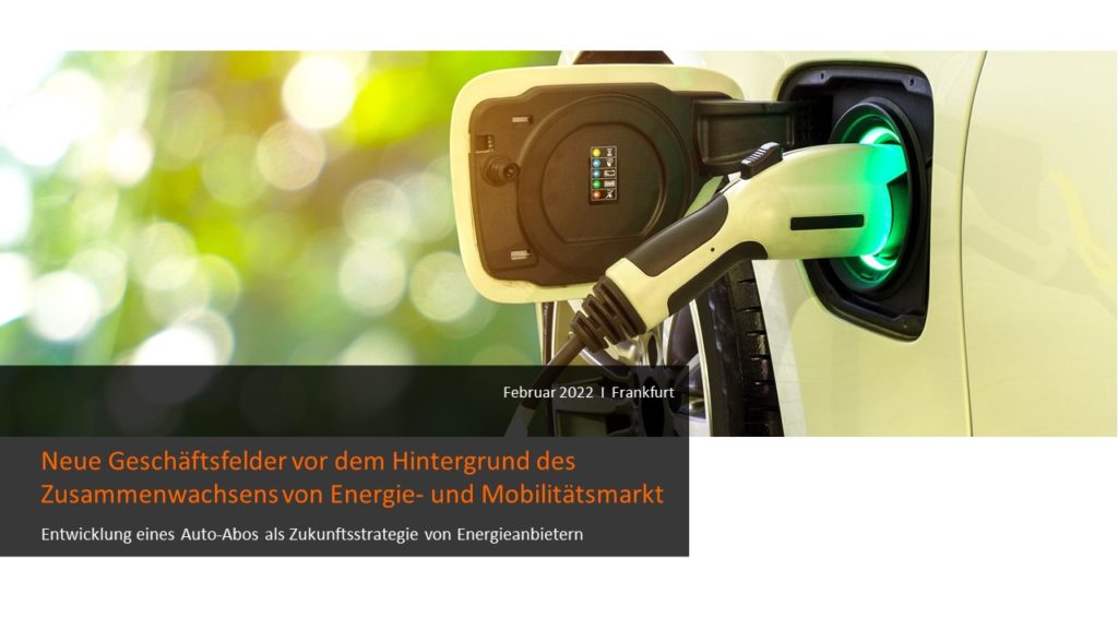 Für Fragen und Vorhaben zu den genannten Entwicklungen freuen wir uns jederzeit über eine Kontaktaufnahme Ihrerseits. Unsere Unterlage „Neue Geschäftsfelder vor dem Hintergrund des Zusammenwachsens von Energie- und Mobilitätsmarkt - Entwicklung eines Auto-Abos als Zukunftsstrategie von Energieanbietern“ finden Sie unten oder hier als PDF.